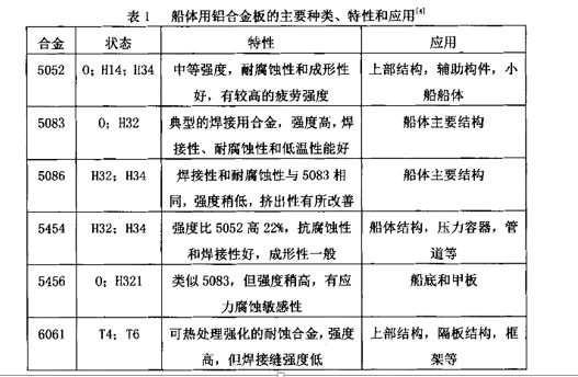 船舶的建造和工作環(huán)境要求材料應有良好的耐蝕性、可焊性、可塑性和一定的抗拉強度、屈服強度、伸長率、抗沖擊等性能。滿足這些性能,并在船舶應用最多、效果較好的鋁合金有工業(yè)純鋁、鋁—鎂系和鋁—鎂—硅系合金。近年來,鋁—錳—鎂系合金也日益引起人們的興趣。